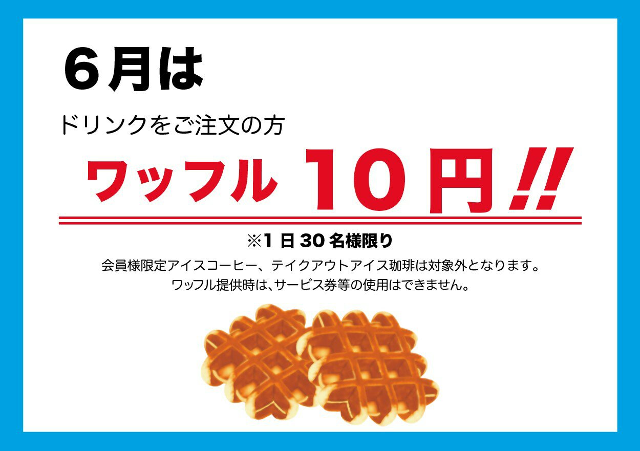 6月中ずーっとワッフル10円です☔💕