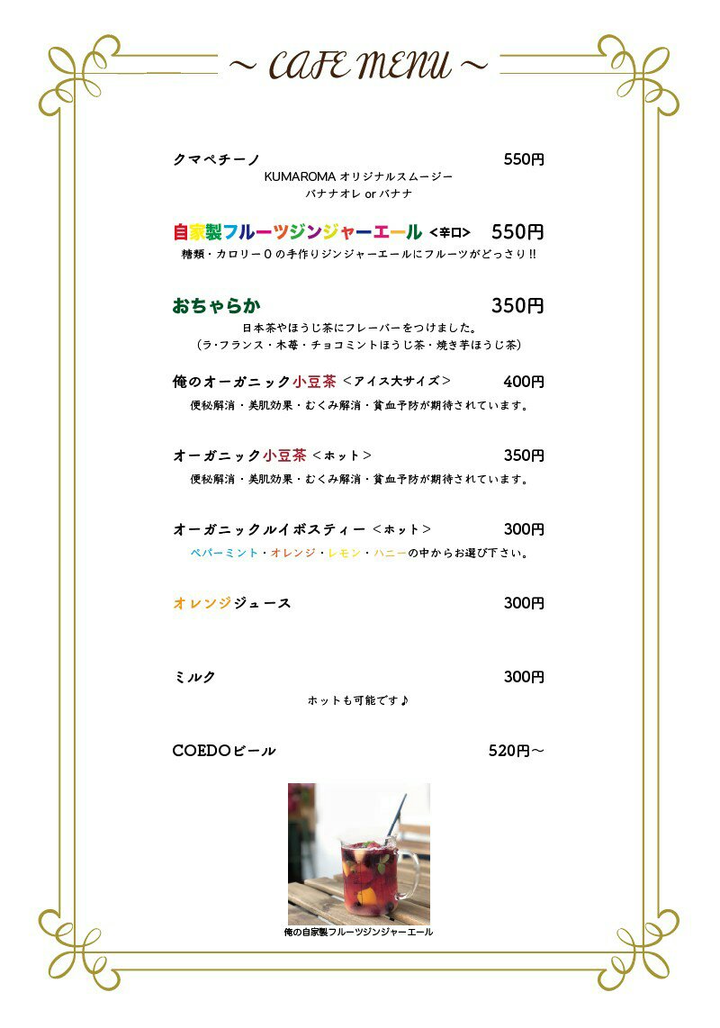 改めて思うことは、クマロマのドリンクメニューってかなり安い。