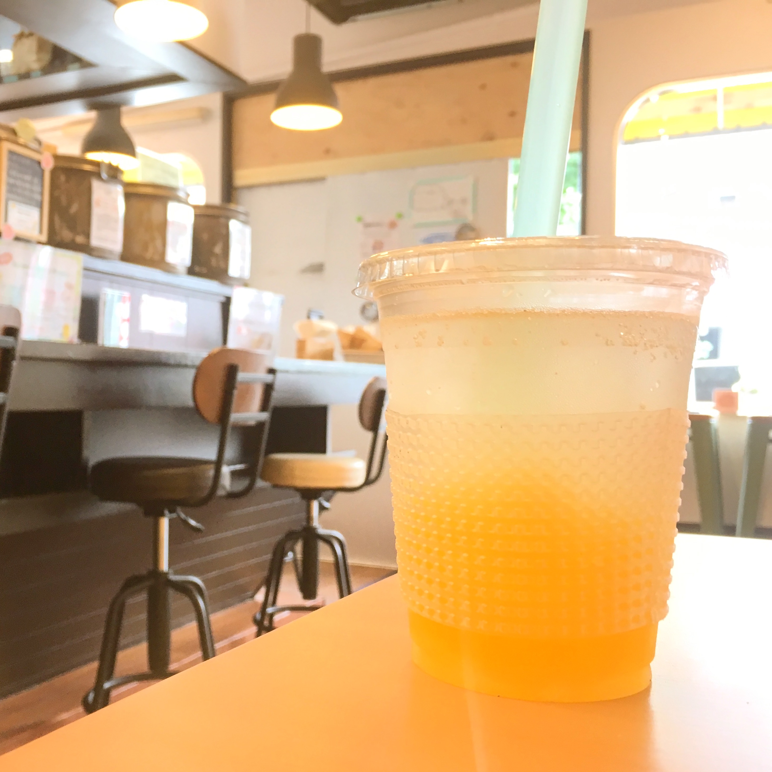 テイクアウト用のジンジャーエールは、中にごろっとフルーツゼリーとココナッツジュレが入っている新しいタイプです。