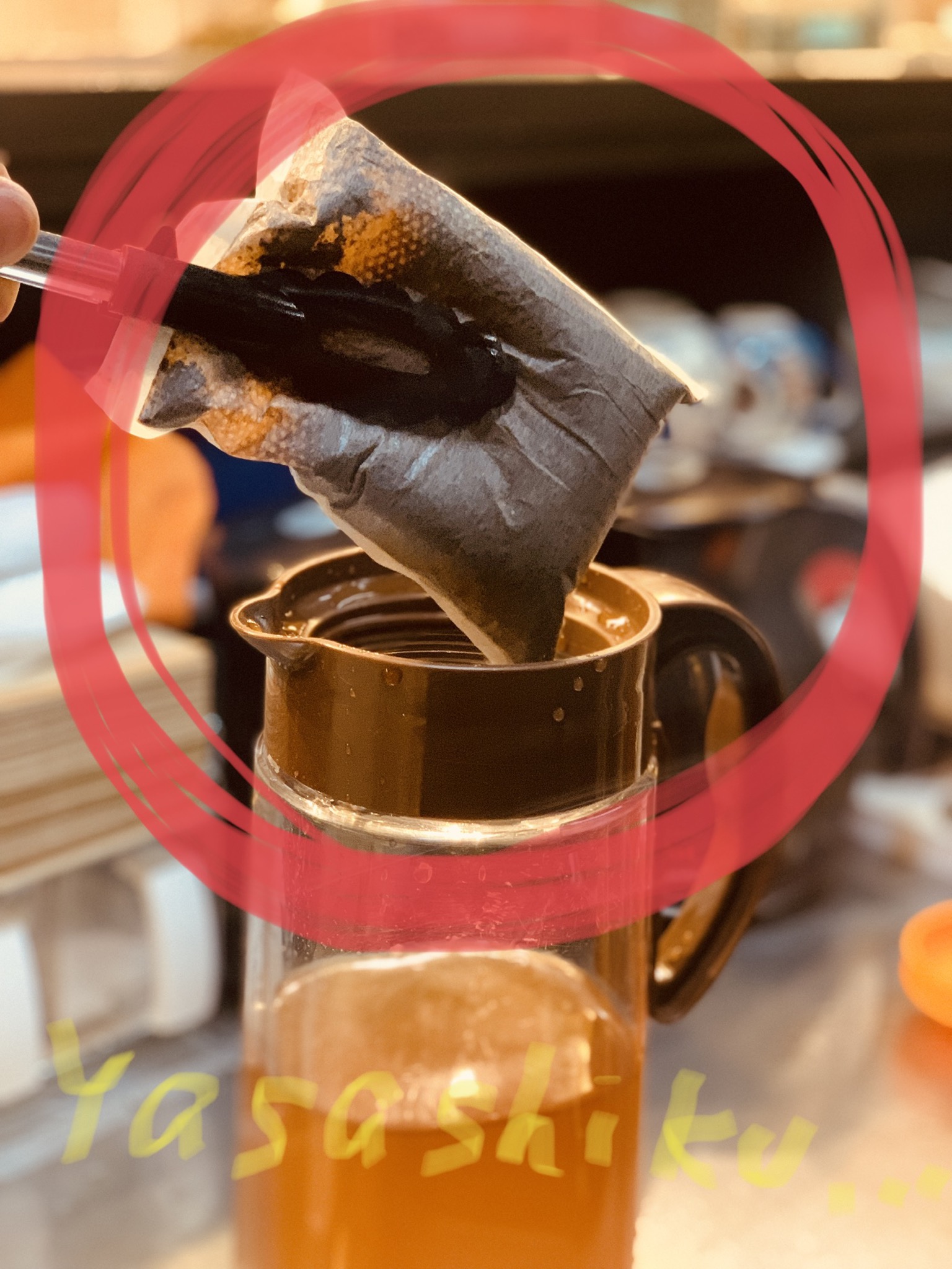 コーヒーパック1コで100ml前後の水を吸ってしまうので、仕上がりは最初の仕込み水より少しだけ少なくなります。