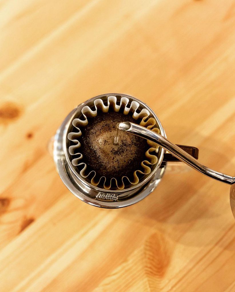 ドリッパーの構造上、紙のフィルターがコーヒー粉を【ぎゅっ】と横から抑えてくれるので、新鮮なコーヒー豆であればカップケーキのようにモコモコ膨らんでくれます♪