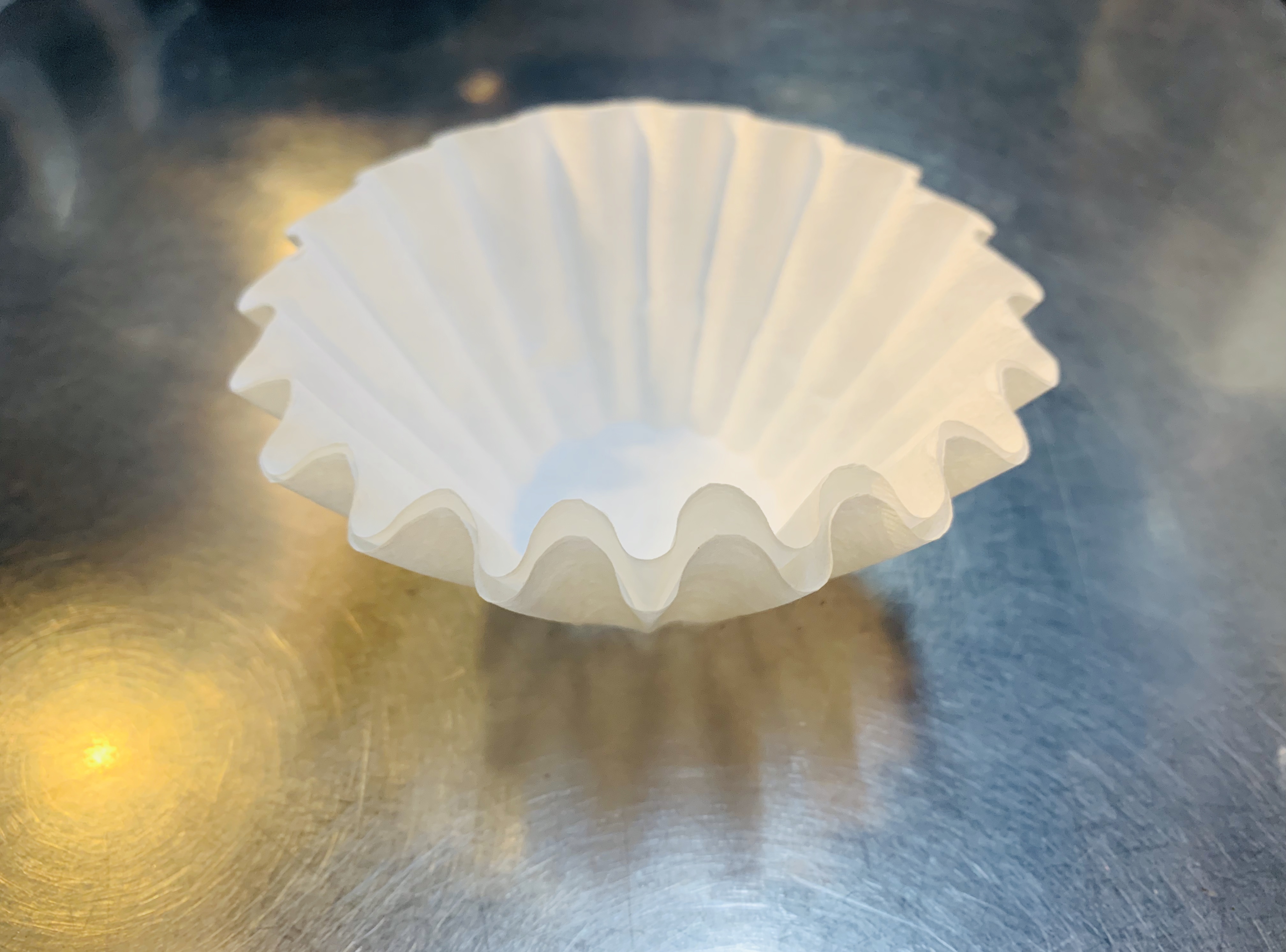 いかがでしょうか。抽出がある程度進んでもフィルターがヨレたり崩れたりする気配がありません。ちなみにこの形はドリップ終了後も崩れることはありません。