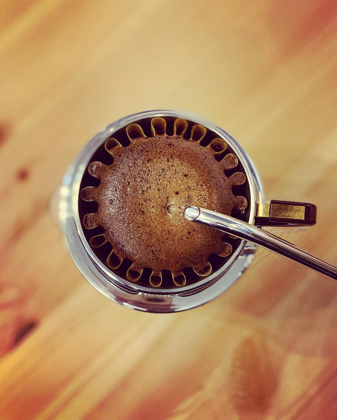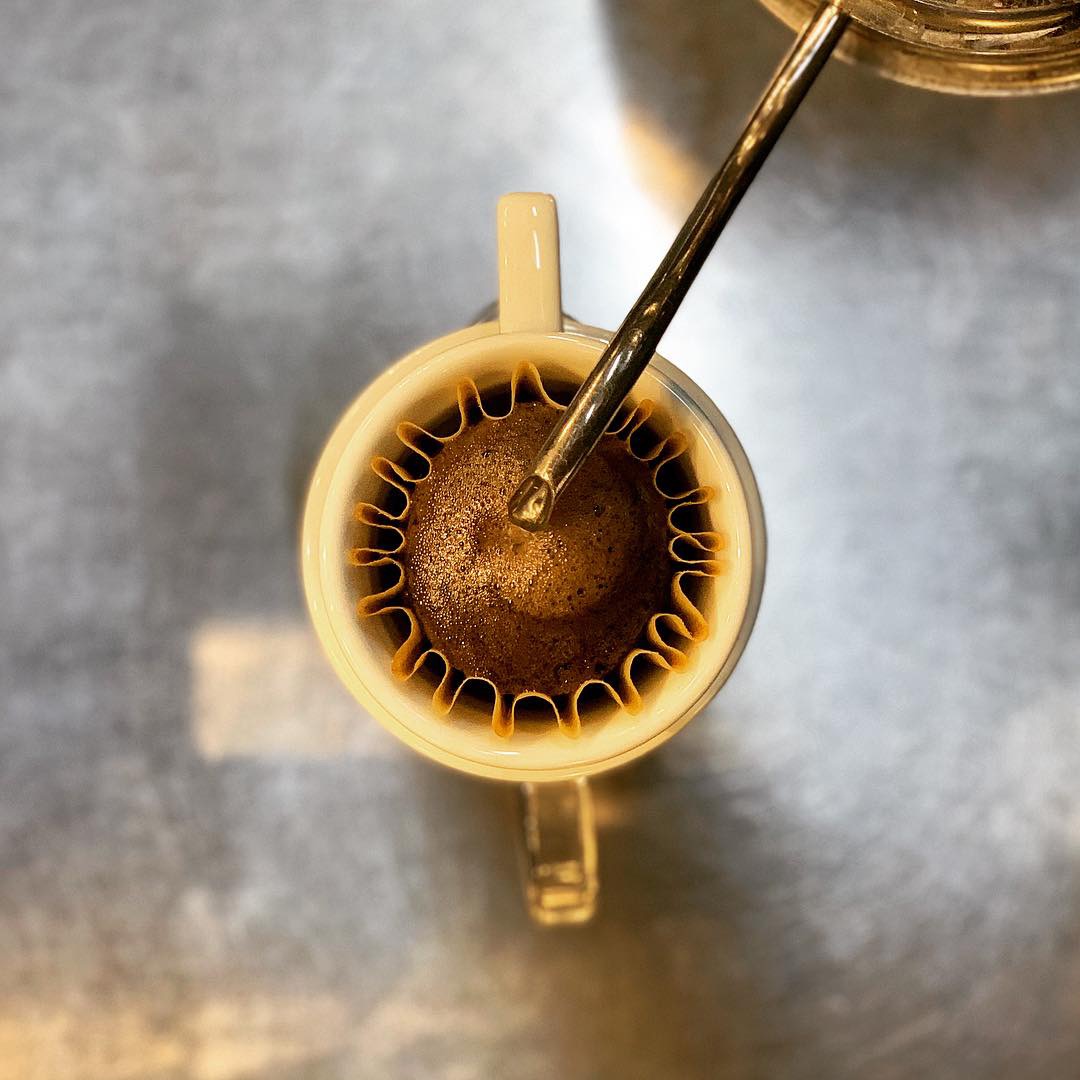 ドリッパーの構造上、紙のフィルターがコーヒー粉を【ぎゅっ】と横から抑えてくれるので、新鮮なコーヒー豆であればカップケーキのようにモコモコ膨らんでくれます♪