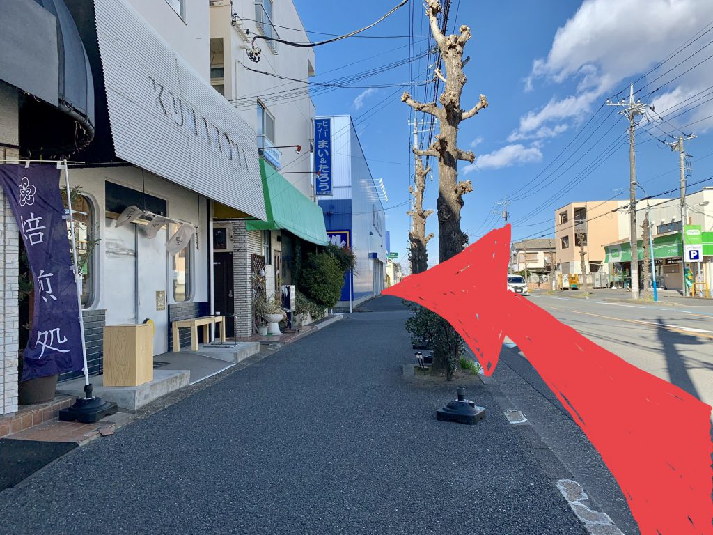 下記では写真を使って、店舗からの道案内をいたします。