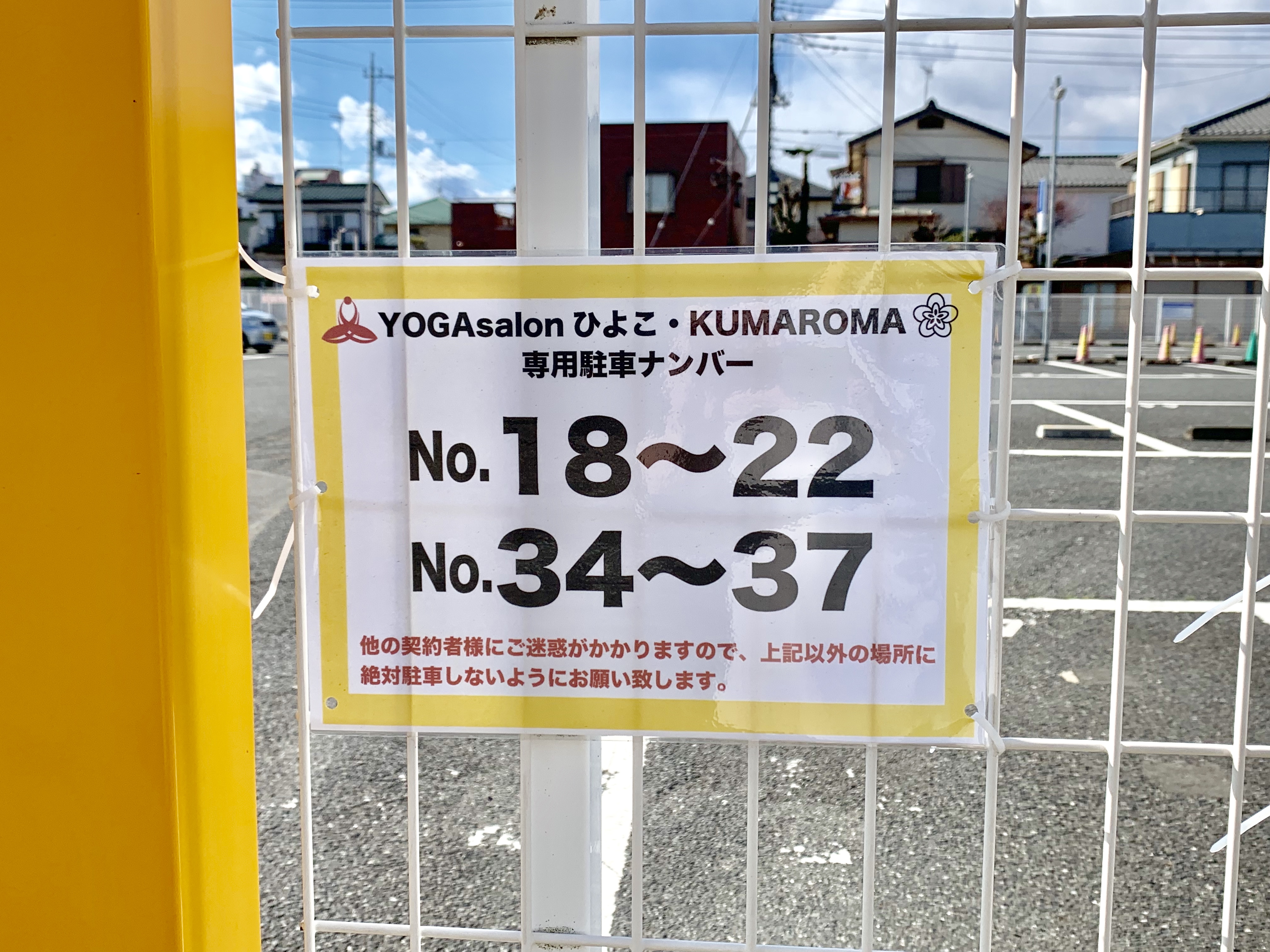 当店の駐車場は、弊社別事業ヨガサロン の会員様にもご利用いただいております。