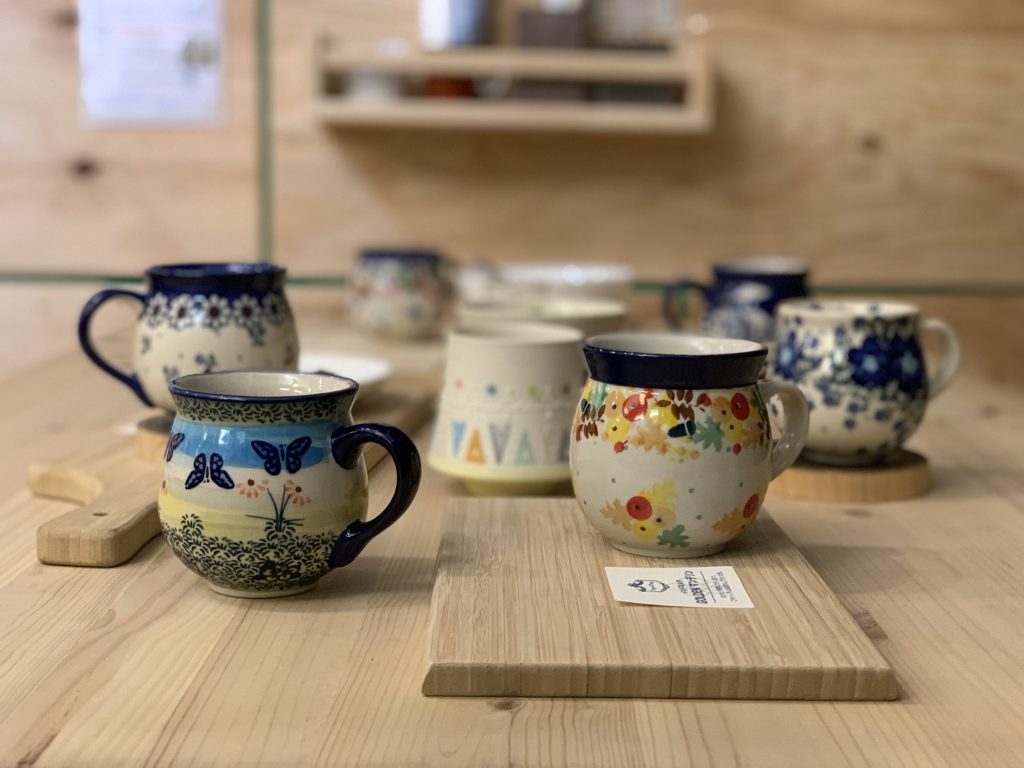 ポーランドのもので、ひとつひとつ職人さんがペイントしているため微妙な風合いや色ムラが愛らしいカップです。