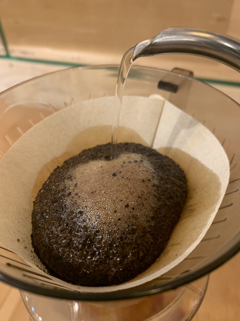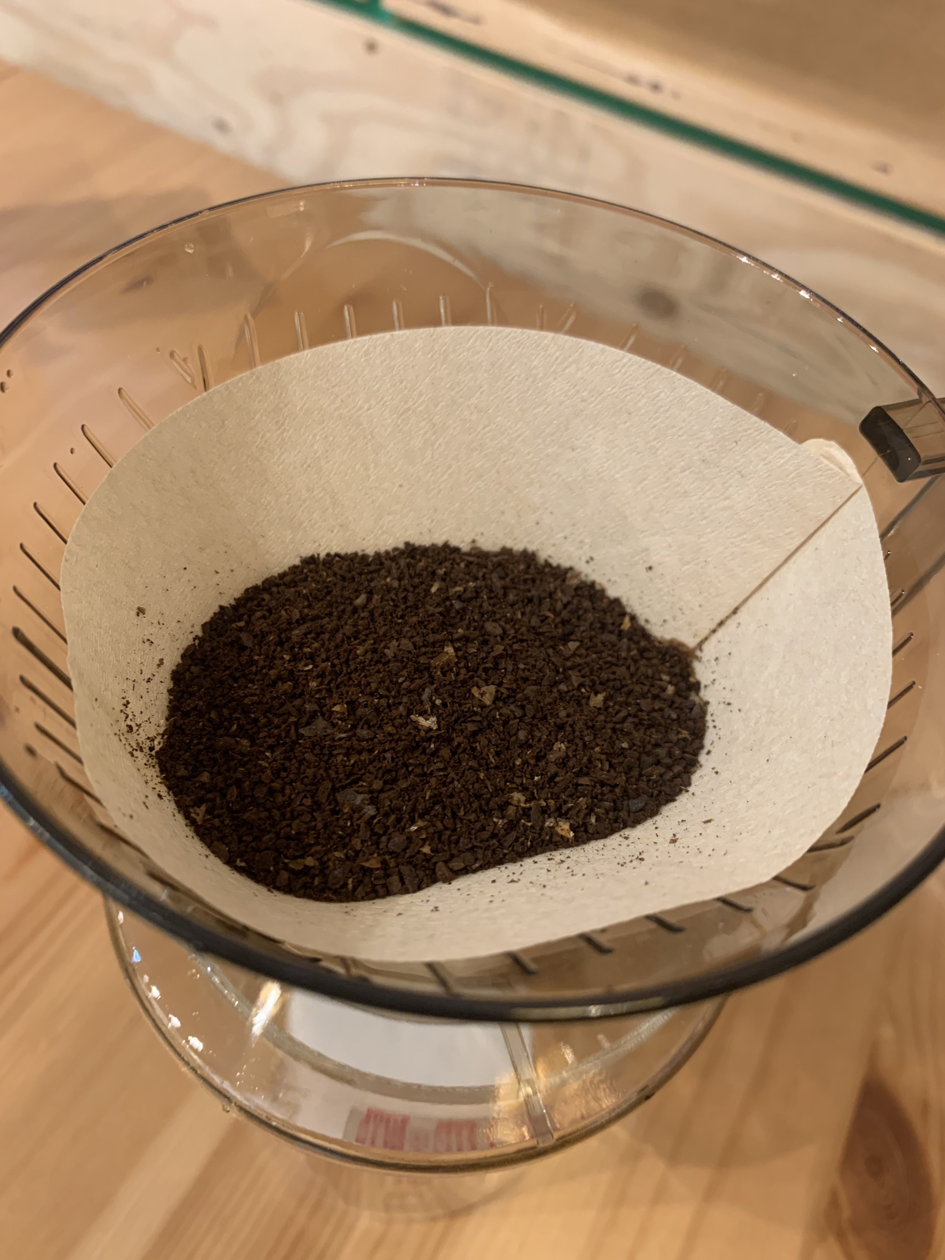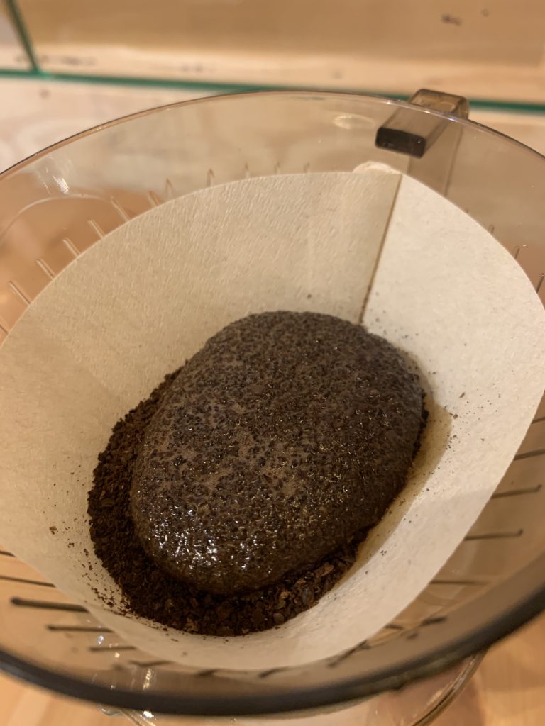 やはりフィルターは少し寸足らずになってしまいました。これでも問題なく抽出できますが、出来る限りドリッパーのサイズに合ったフィルターを選びましょう。今回は100均フィルターの品質もみてみたかったので、このまま使わせていただきます。