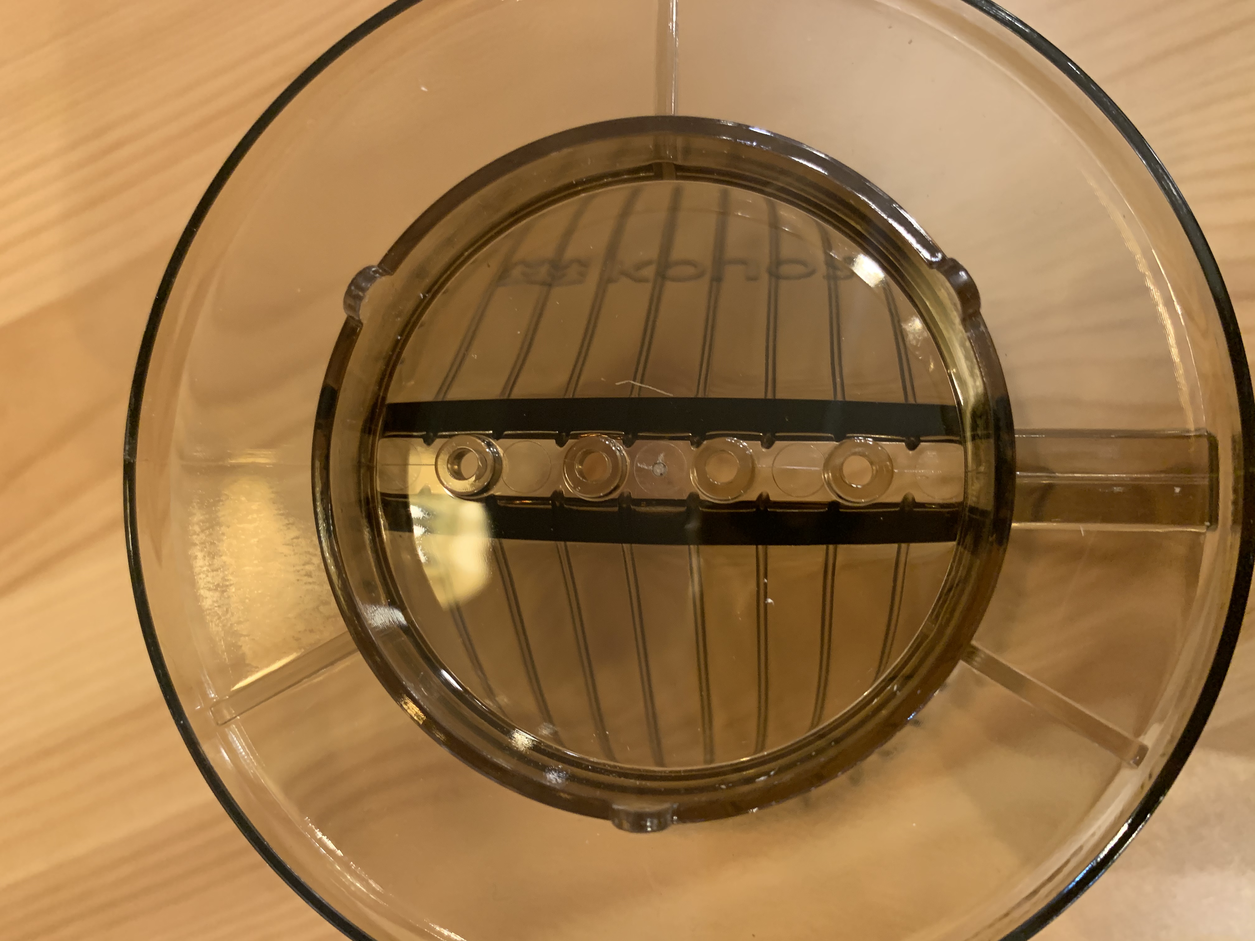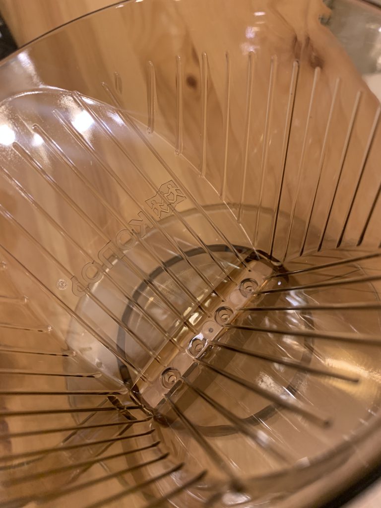 お湯の出口となる穴も綺麗に入っていますし、空気の供給口となる「リブ」と呼ばれる内側の線もしっかりと施されています。底の穴の数が4つ空いていますが、これは比較的多いです。投入したお湯がするすると下へ抜けて早めに抽出が終わるので、さっぱりとした味わいの珈琲になる傾向にあります。