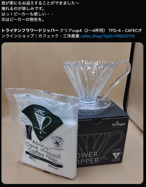 トライタン製で耐久性抜群のこのドリッパーは、日々のコーヒータイムに欠かせないアイテムです。